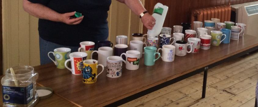 Byddwn yn helpu i baratoi te i’r difreintiedig yng nghapel y Tabernacl, yr Aes bob rhyw dri mis.